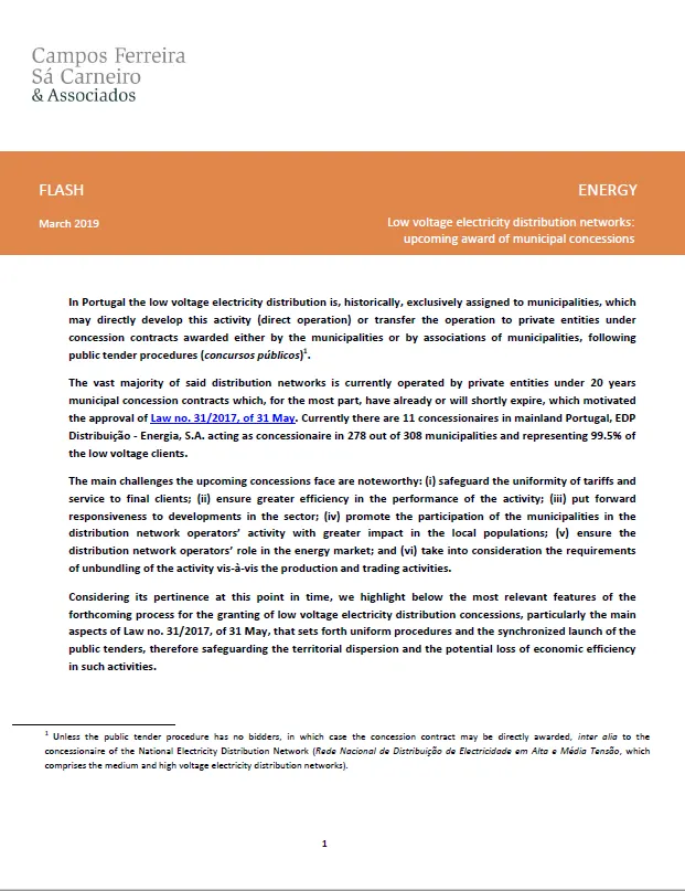 Low voltage electricity distribution networks: upcoming award of municipal concessions