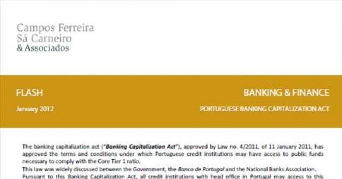 The Banking Capitalization Act approved by Law no. 4/2012, of 11 January 2012, has approved the terms and conditions under which Portuguese credit institutions may have access to public funds necessary to comply with the Core Tier 1 ratio, until 30 June 2014.
