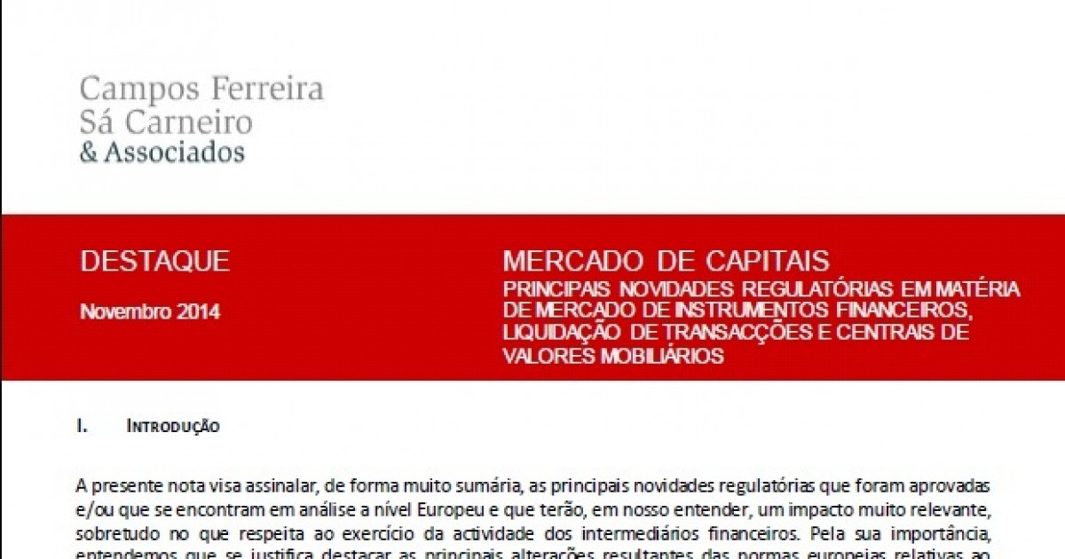 Neste Destaque analisamos as principais novidades, que terão um impacto relevante na actividade dos intermediários financeiros, em resultado da aprovação das novas regras europeias constantes da DMIF II e do Regulamento do Mercado de Instrumentos Financeiros bem como do Regulamento relativo à melhoria da liquidação de valores mobiliários na União Europeia e às Centrais de Valores Mobiliários